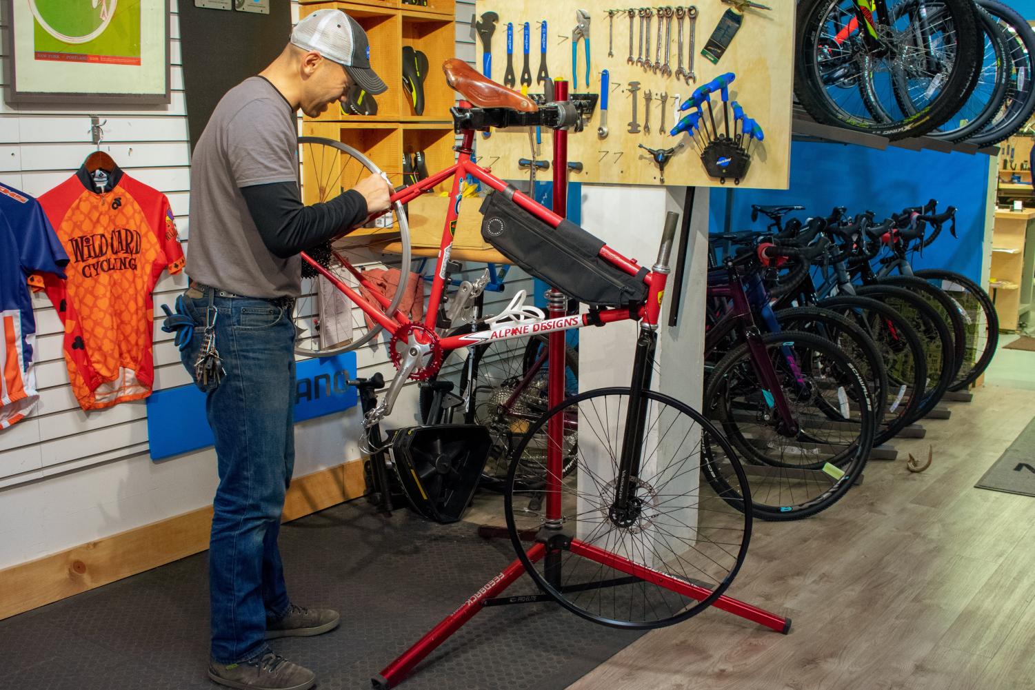 Paul Ignacio, sales manager of Neutral Cycle, works on a customer’s repair on Monday at their Green Street store.