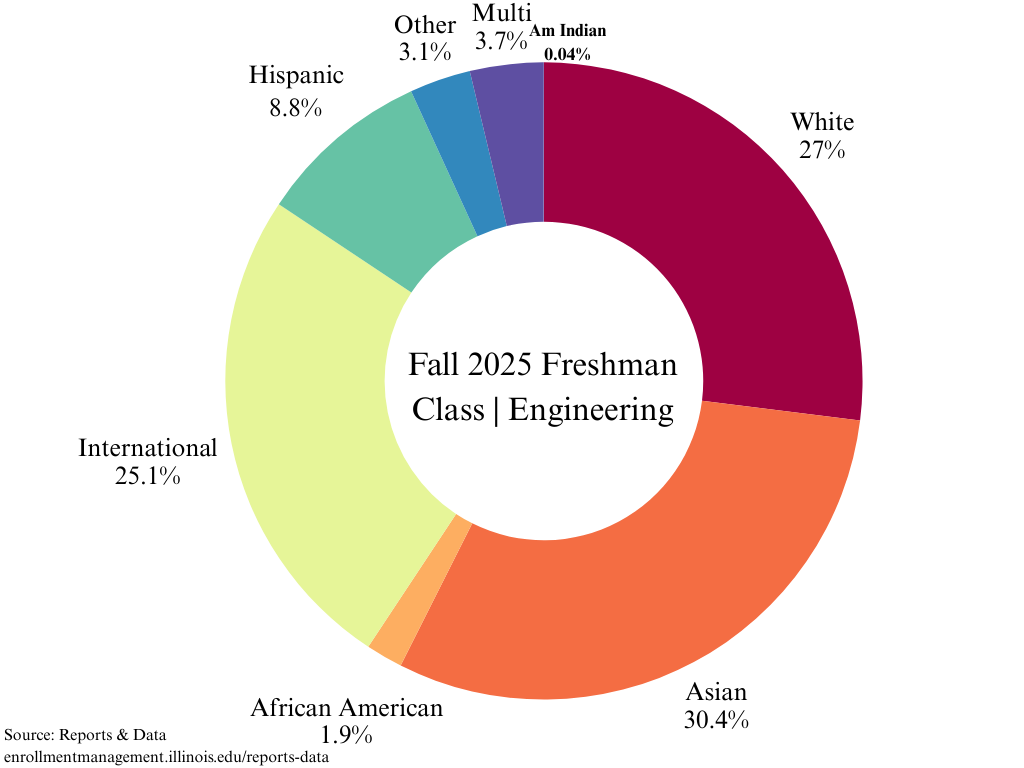 Fall 2025 freshman class demographics in the Grainger College of Engineering. (Rikkie Gunawan and Ryan Pearlman)