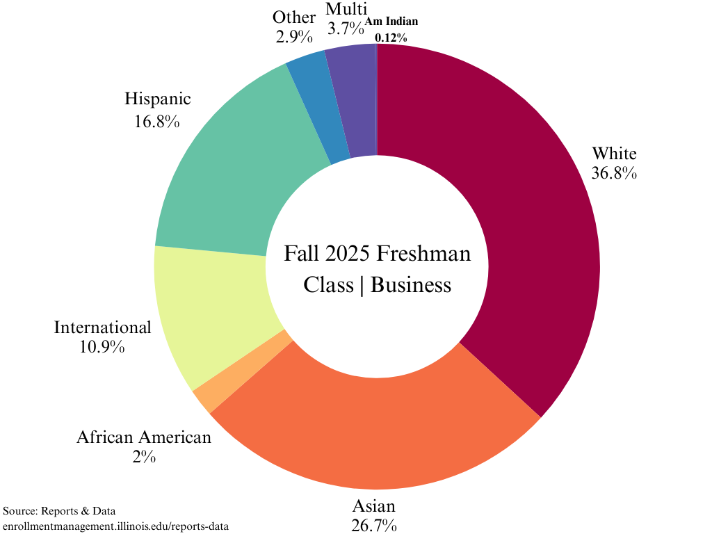 Fall 2025 freshman class demographics in the Gies College of Business. (Rikkie Gunawan and Ryan Pearlman)