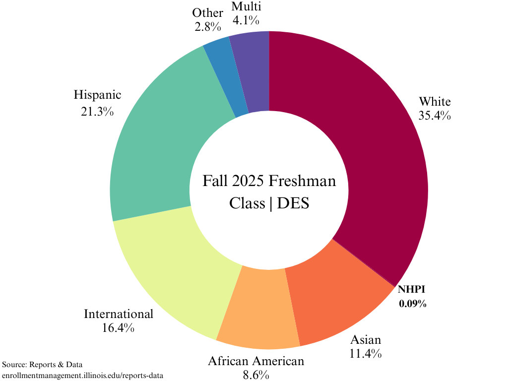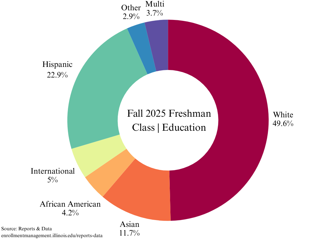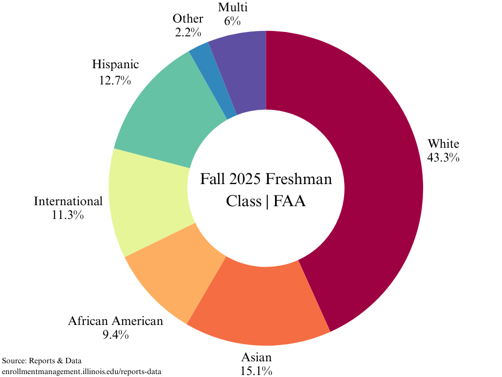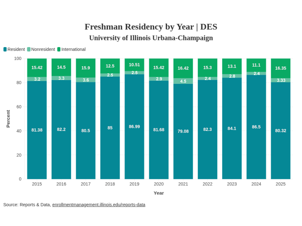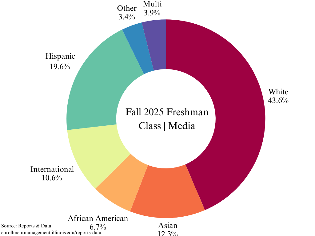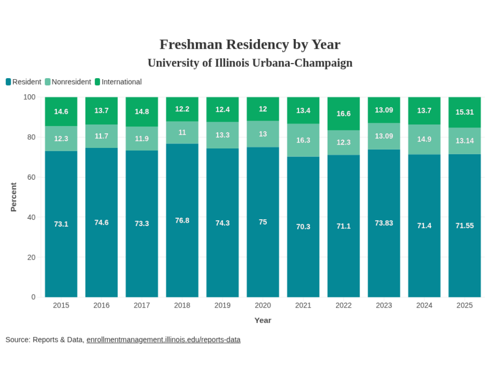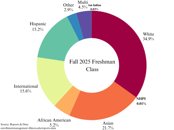 The 10th day report also detailed the residency status of the new student class. The class of 2029 is made up of 71.54% Illinois residents, 13.14% out-of-state nonresidents and 15.31% international students.