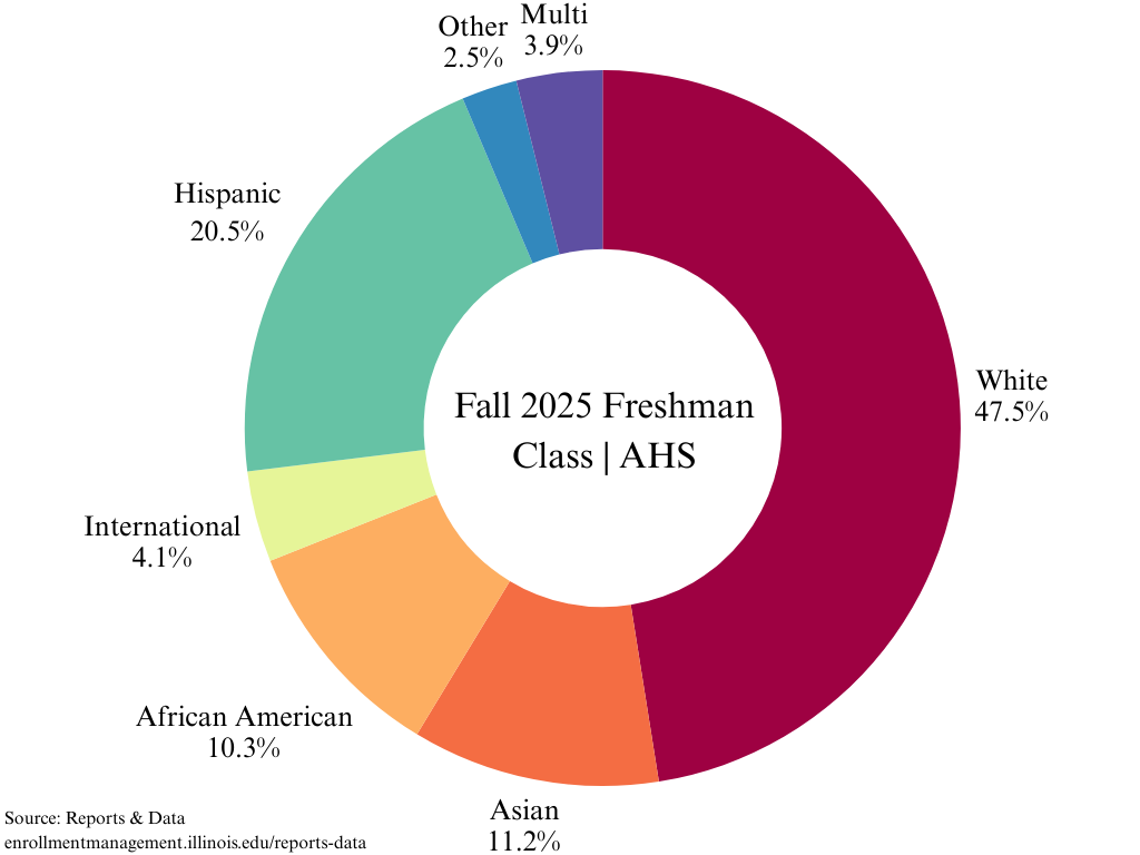 Fall 2025 freshman class demographics in the College of Fine & Applied Arts. (Rikkie Gunawan and Ryan Pearlman)