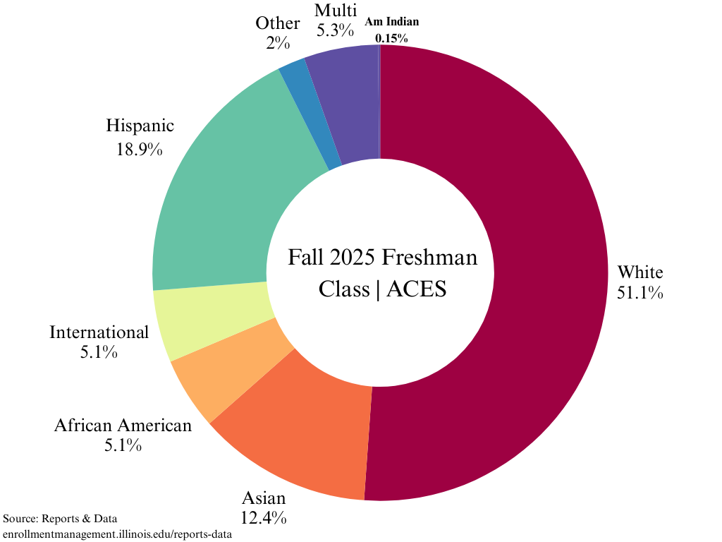 Fall 2025 freshman class demographics in the College of Agricultural, Consumer and Environmental Sciences. (Rikkie Gunawan and Ryan Pearlman)