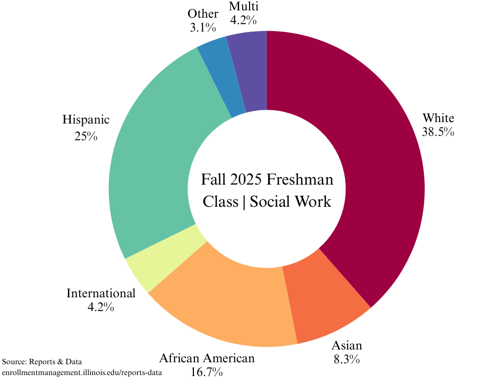 Fall 2025 freshman class demographics in the School of Social Work. (Rikkie Gunawan and Ryan Pearlman)