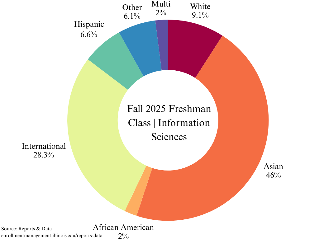Fall 2025 freshman class demographics in the School of Information Sciences. (Rikkie Gunawan and Ryan Pearlman)