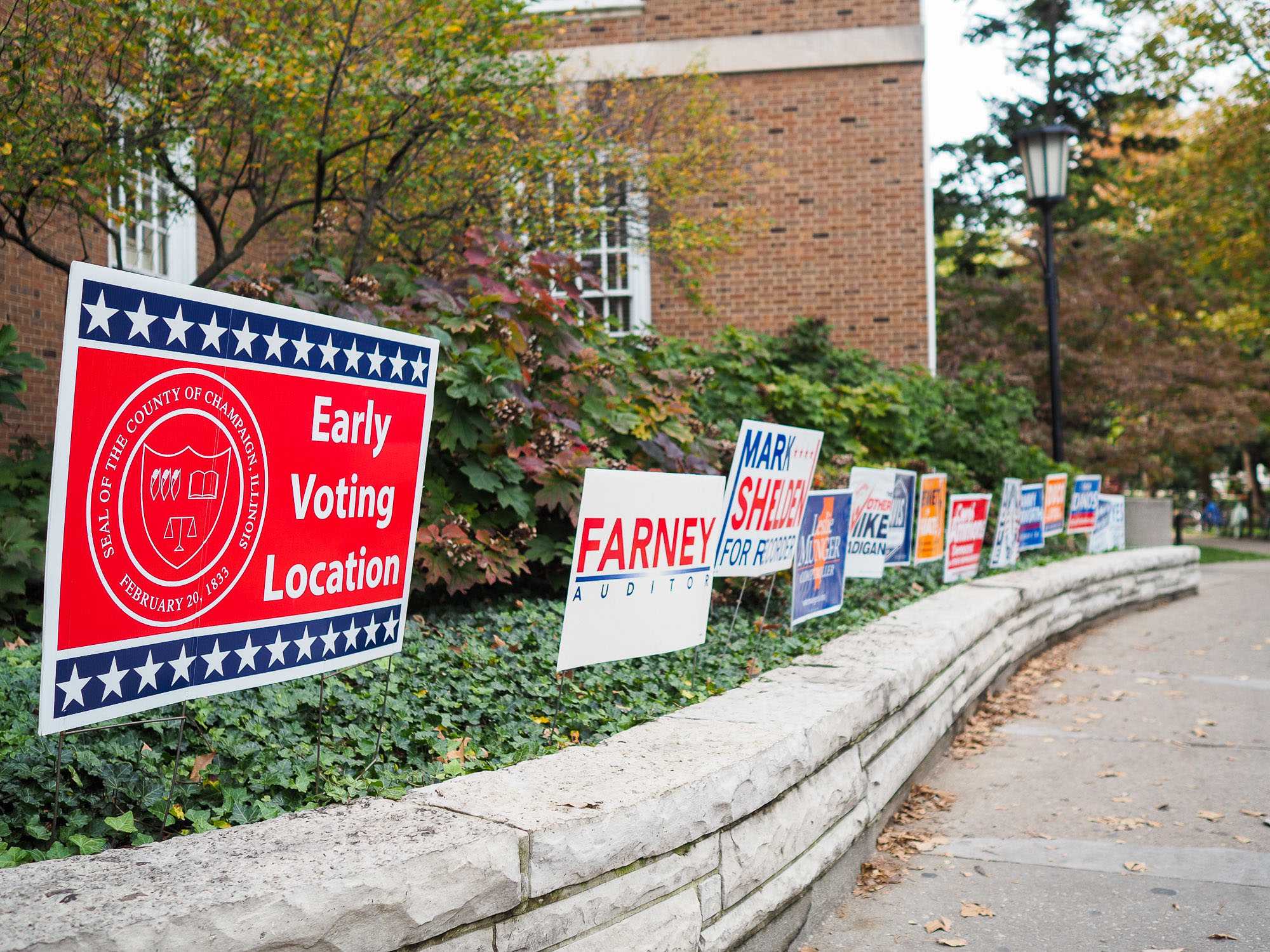 Early voting started at the Illini Union on Monday. Many campaigns have placed signs out front to persuade voters.