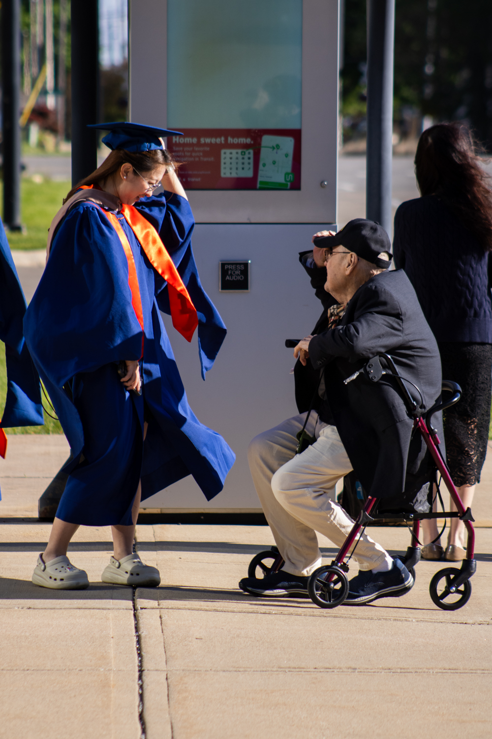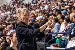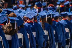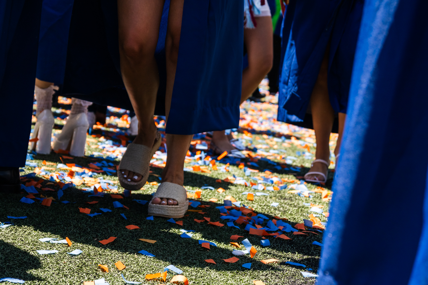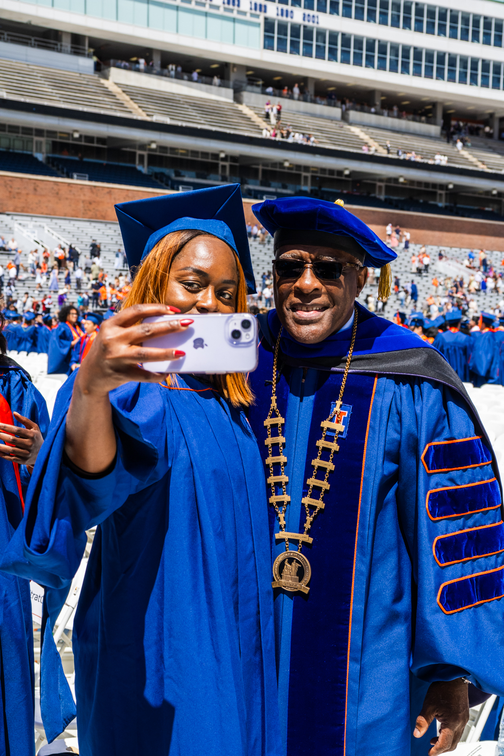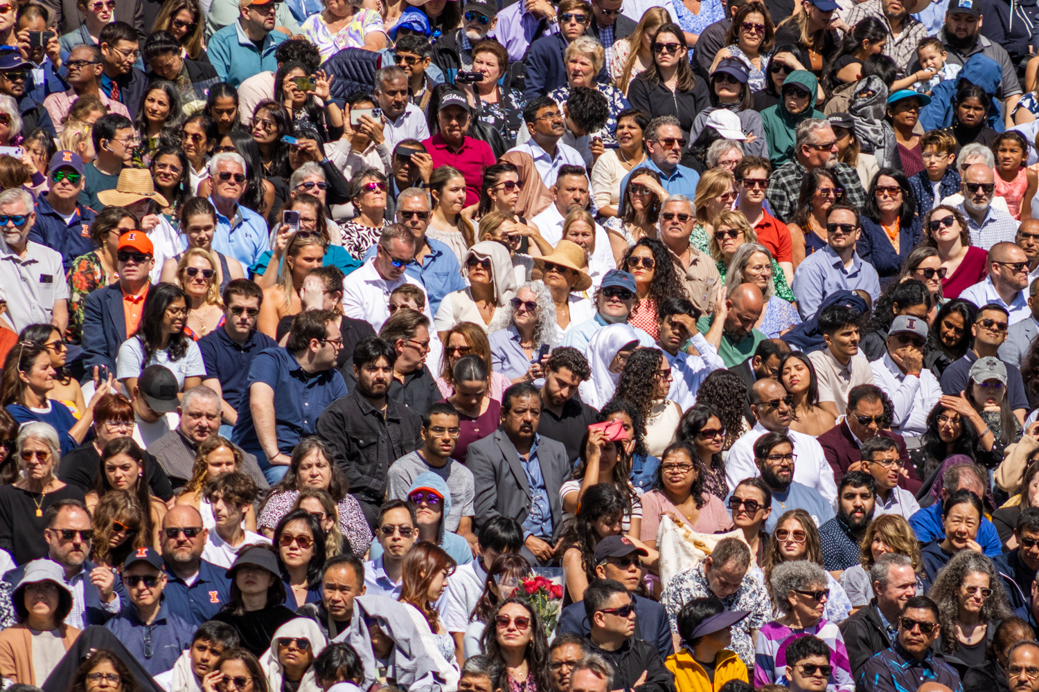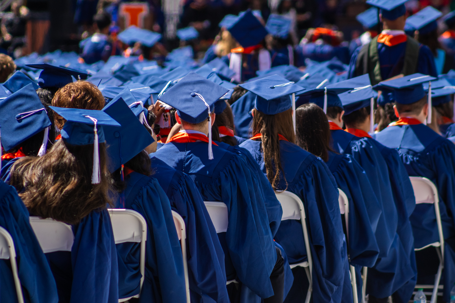 Newly graduated Illinois students link arms and sing “Hail to the Orange” to conclude the 2025 Illinois Commencement ceremony on May 17.