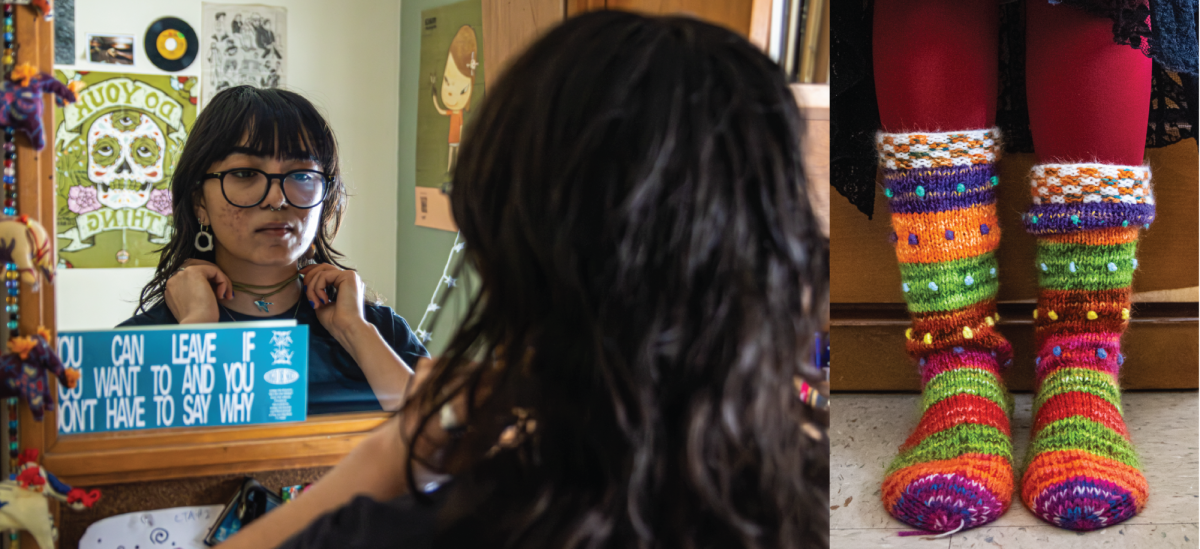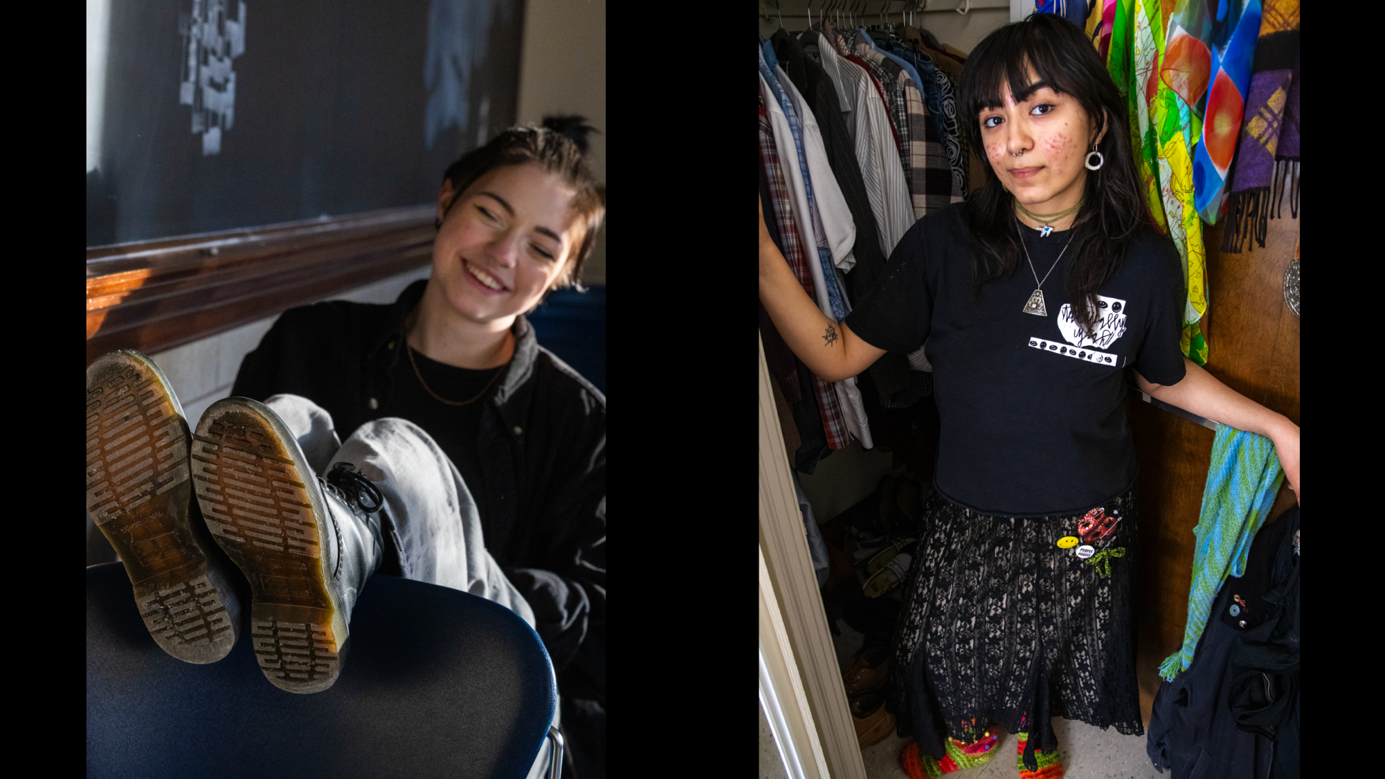 Emma Martinez, senior in FAA, is a queer woman. But she says her personal style isn’t restricted to her gender identity. She layers accessories, scarves and thrifted staple pieces to create her style.