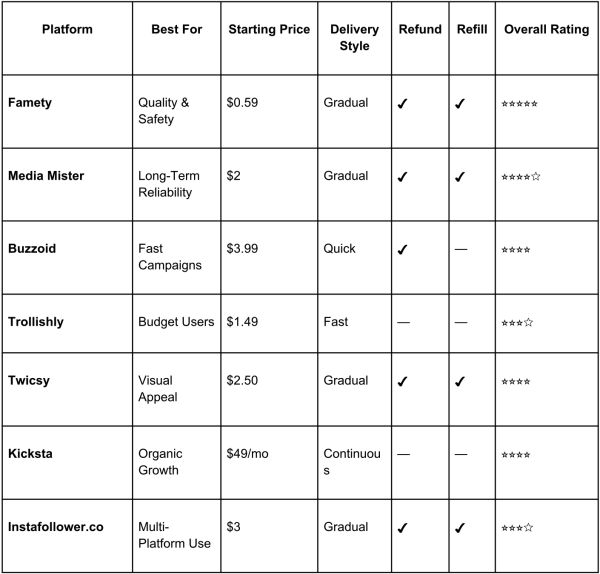 like Famety and Media Mister lead here, both deliver followers in a natural pattern and