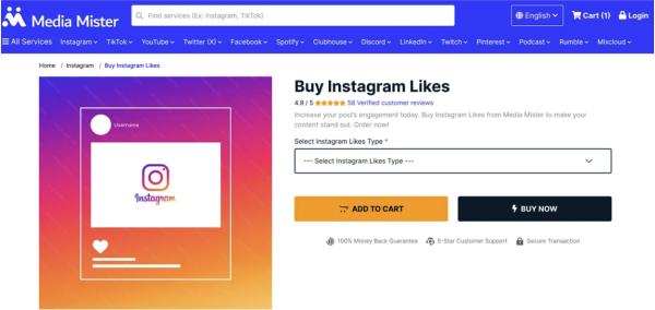 Media Mister is the best website to buy Instagram likes because it offers real likes, supports geo-targeting, and offers a 60‑day retention warranty.