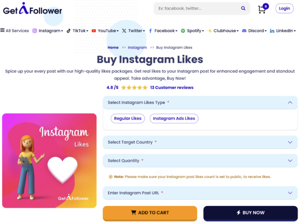 2. GetAFollower – Top Pick for Affordable Instagram Likes