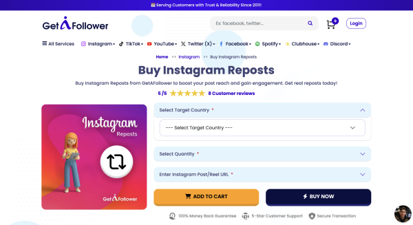 GetAFollower is the best place to buy instagram reposts because it offers gradual delivery, flexible targeting options, and a money-back guarantee if engagement doesn’t arrive as described.