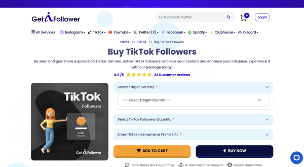 1. GetAFollower – Ideal for Affordable TikTok Follower Packages