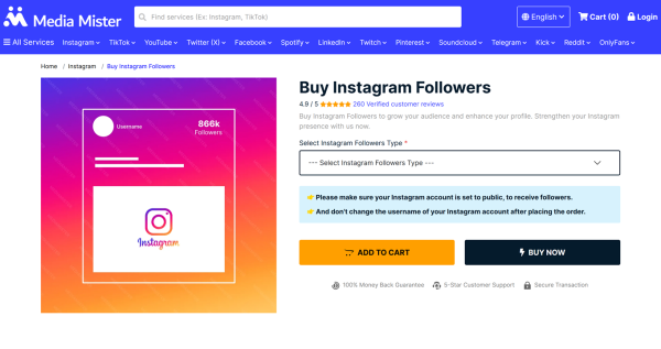 Media Mister is the overall best site to buy Instagram followers because it offers real, country-targeted followers, gradual delivery options, and a clear 30-day refund plus 60-day refill guarantees.