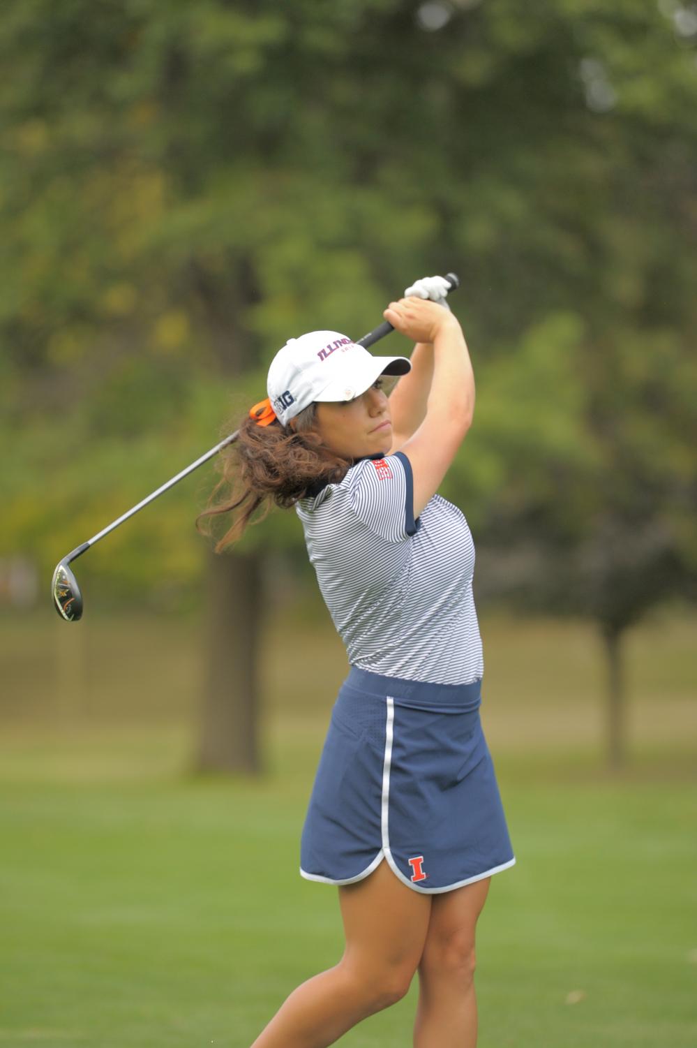 Senior Dana Gattone takes a swing of her Callaway club. The Illini golfers carry their clubs and so much more onto the course.