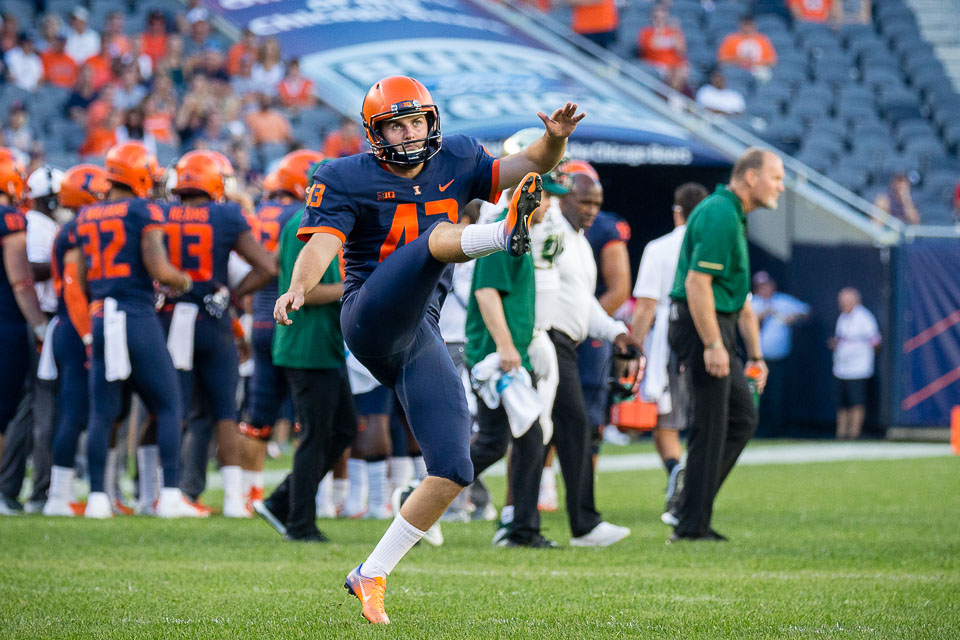 On Saturday at Soldier Field, the senior became the first Illinois kicker ever to make three 50-yard-plus field goals over three consecutive games. He’s tied for the lead in the FBS and is also tied for first in Illinois history with four 50-yard-plus field goals.
