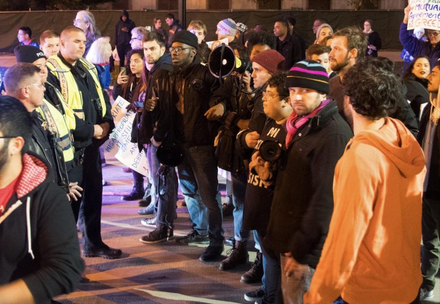 [Photo] Chief Illiniwek protesters block Homecoming Parade
